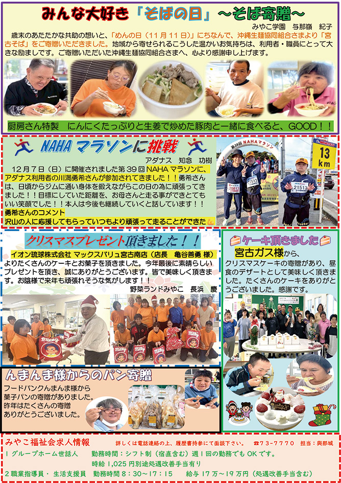 お問い合わせ下さい ・ みやこ学園 TEL: 0980-73-7770 FAX: 0980-74-2338 ・ 分場「アダナス」 TEL: 0980-74-1188 FAX: 0980-74-1288 ・ 野菜ランドみやこ TEL: 0980-73-1717 FAX: 0980-73-8005 ・ グループホームみやこ TEL: 0980-73-8883 |