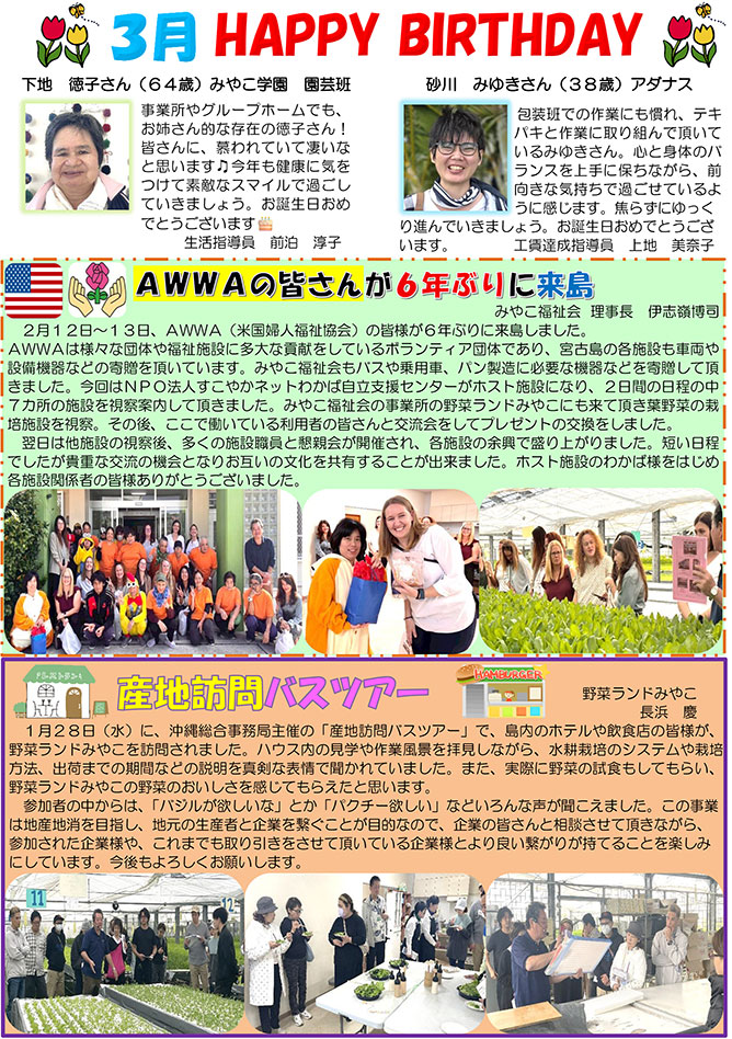 お問い合わせ下さい ・ みやこ学園 TEL: 0980-73-7770 FAX: 0980-74-2338 ・ 分場「アダナス」 TEL: 0980-74-1188 FAX: 0980-74-1288 ・ 野菜ランドみやこ TEL: 0980-73-1717 FAX: 0980-73-8005 ・ グループホームみやこ TEL: 0980-73-8883 |