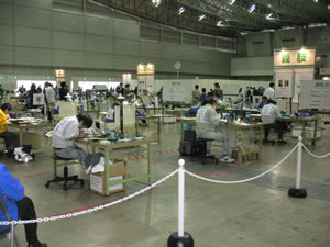 先月、25日に千葉県の幕張メッセで独立行政法人高齢・障害者雇用支援機構の主催で「障害者ワークフェア2008」が開催されました。今回、富山県で障害者雇用を実践しているナッパーランド立山の宇治稔社長の推薦で、みやこ学園として初めて展示即売に参加させて頂きました。このイベントは、障害者の雇用の促進と安定を図るために、障害者を雇用する全国重度障害者雇用事業所協会の会員事業所による障害者雇用の取り組みをパネル、写真、ビデオ、障害者の作業実演、製品展示により、広く一般住民に紹介し、国内における障害者の雇用に対する理解の促進を図ることを目的に開催されるとの事です。今回、このイベントに参加して各企業の障害者雇用のいろいろな事例を参考にして、今後の宮古島における障害者雇用に結びつけるよう関係機関と協力して行きたいと改めて思いました。