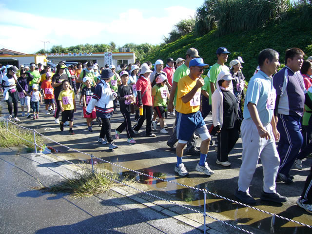 さわやかな秋晴れの中、「第34回宮古島タートルマラソン大会」が10月24日(日)行われ、みやこ福祉会からもBコース(9km)3名Cコース(4.8km)36名の合計39名が参加しました。大会には、宮古島内外から毎年多くの参加者がいますが、走りながら、歩きながらいろんな方に「がんばって!」の声を掛けたり掛けられたりしながら「おそいあなたが主役です。」の道中を楽しむ姿がみうけられました。