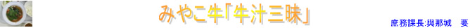 12月17日(金)沖縄県獣医師会宮古支部よりJAおきなわより新発売された「宮古島んま牛の牛汁三昧」の寄贈があり贈呈式と試食会を行いました。この企画は子牛の拠点産地である宮古島をアピールする為に商品化された牛汁三昧をみやこ学園のみんなにも試食して頂き宮古牛の普及に協力してほしいとの趣旨で行われ、贈呈式のなかで慶留間支部長は「牛汁三昧は宮古牛を宮古味噌で仕立てた牛汁をレトルトパックにし手軽に食することができるようにした商品であり、みなさんも試食をしてぜひアピールしてほしい」とのお言葉を頂きました。試食会では野菜ランドみやこのサラダほうれん草も牛汁三昧の上に添えられ、一層おいしさを引き立てており試食したみなさんも牛汁三昧に舌鼓を打っていました。沖縄県獣医師会宮古支部のみなさんありがとうございました。