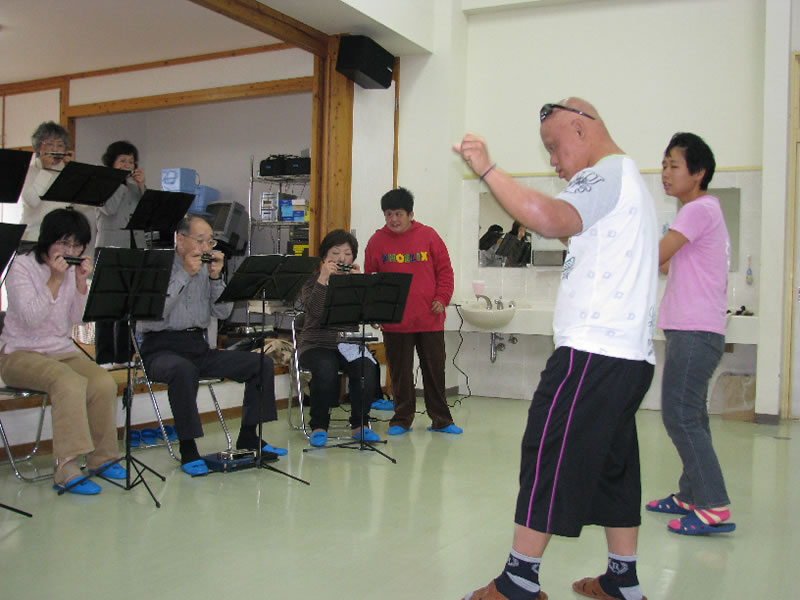 1月26日(水)大阪よりハーモニカ演奏をしてくださるボランティアの皆さんが、学園に来て頂きひと時の楽しい時間を過ごすことが出来ました。利用者の皆さんは、アニメソングなどが演奏されるとリズムに乗りノリで歌やダンス指揮者まで現れるなど、短い時間ではありましたがとっても愉快に過ごしました。本当に有難うございました。
