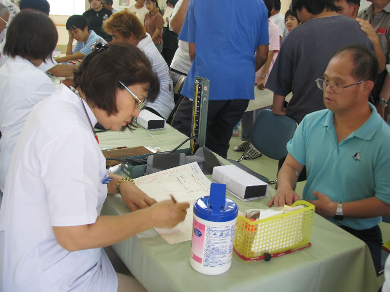 6月27日(月)に前期の定期健康診断がありました。いつものことながら心配と不安が交錯するなかそれぞれいろいろな思いで受けていました。69名の利用者が健康診断をうけました。利用者が学園内を右往左往している状況を見ていると、大所帯になったなぁと実感します。スムーズに受けている方、注射を嫌がってなかなか進まない方、体重計に乗ることを躊躇している方など様々な健康診断への思いが見受けられました。