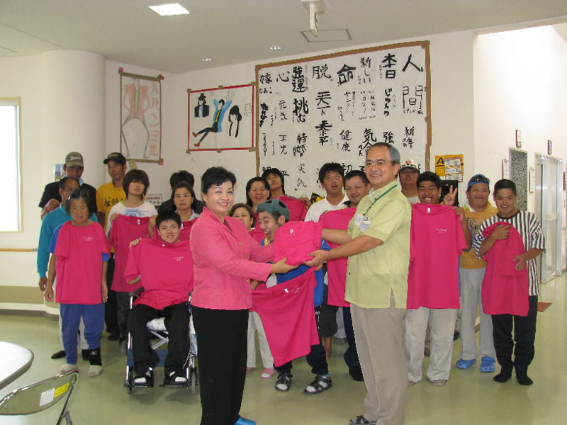 10月7日(金)親の会より、みやこ学園及びアダナスの利用者と野菜ランドみやこの従業員へTシャツ(88枚)のプレゼントがありました。