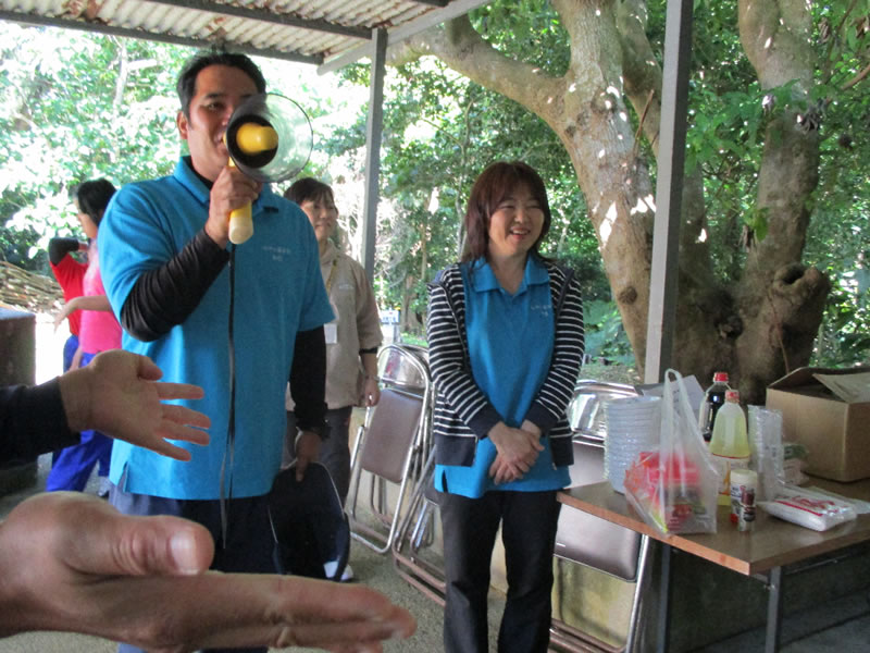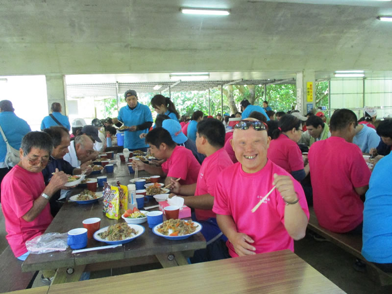 ![]() 去った4月15日(水)毎年恒例の野外活動が青少年自然の家にて行われました。利用者と職員の親睦を深める目的で行われ、その日は天気にも恵まれ絶好の野外炊飯日和となりました。自治会長の神里裕斗さんの開会式の挨拶で早速作業開始です。この日のために考えたメニューに各班役割分担をしながら料理作りに取組みました。毎年行われる事もあって職員、利用者ともレベルアップし、彩り豊かな凝ったメニューがテーブルの上に盛付けられました。各班とも美味しくできあがったようで自慢の料理をテーブルをまわる職員に「自分たちのが美味しいから食べて~」とそれぞれアピールしながらおなかいっぱい美味しくいただきました。午後からはピロティーにて班対抗輪投げ大会を行いました。なかなか輪に入らず悪戦苦闘しながらも楽しく過ごす事ができ、1日心身ともにリフレッシュできたのではないでしょうか?最後に青少年の家の方にお礼をして、自治会福会長の宇座美智枝さんの閉会の挨拶で野外活動を終えました。皆さんお疲れ様でした。