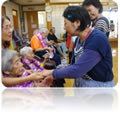 5月14日(土)「グループホームみなみ」の「母の日会」に生活介護とグループホームみやこの利用者及び職員12名で訪れ入所されているお母さんたちを祝いました。みやこ福祉会より授産品(太鼓のストラップ)を一人一人に手渡しプレゼントすると言葉にする事はないが、素敵な笑顔を返して下さいました。踊りが始まると輪の中に入り一緒に踊りを楽しむなど和やかな時間を過ごしてきました。いつまでもお元気でありがとうございました。