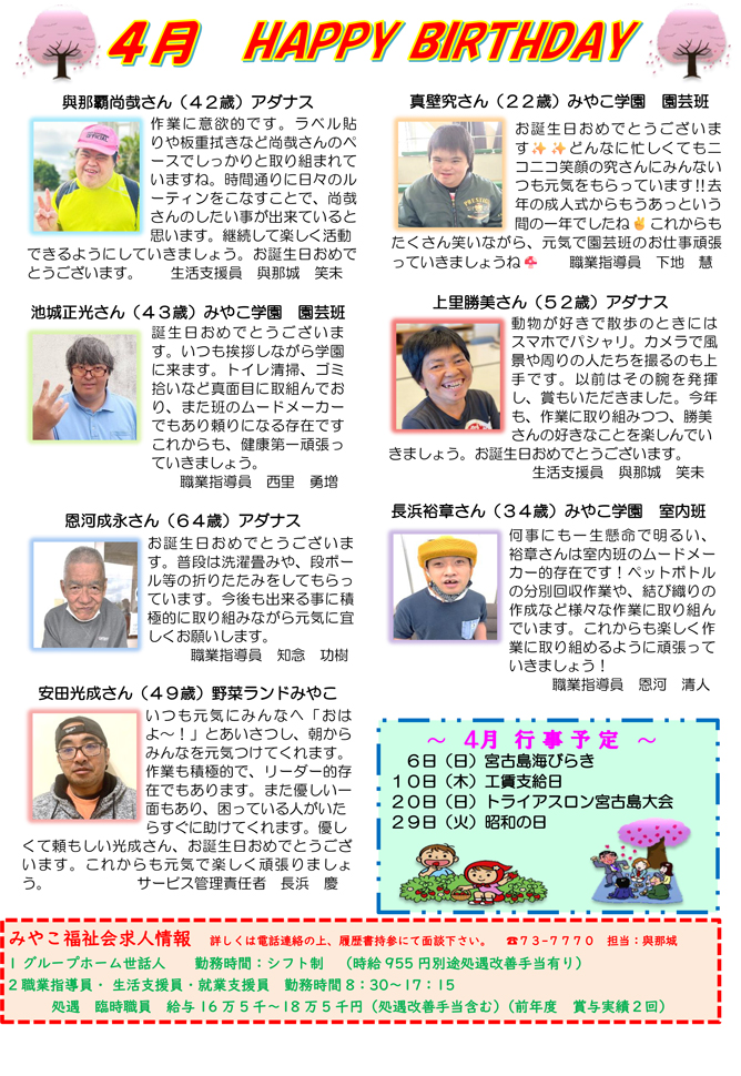 学園だより4月 HAPPY BIRTHDAY![]() |
