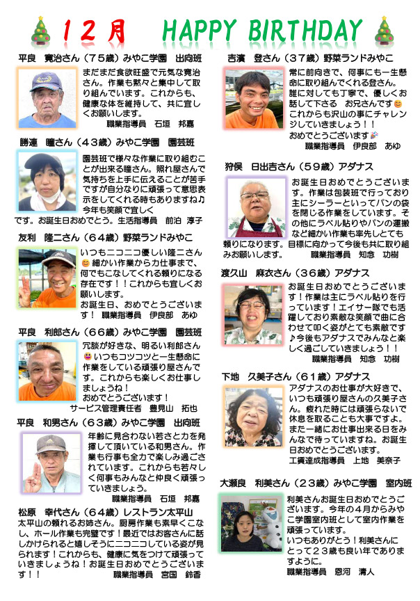 お問い合わせ下さい ・ みやこ学園 TEL: 0980-73-7770 FAX: 0980-74-2338 ・ 分場「アダナス」 TEL: 0980-74-1188 FAX: 0980-74-1288 ・ 野菜ランドみやこ TEL: 0980-73-1717 FAX: 0980-73-8005 ・ グループホームみやこ TEL: 0980-73-8883 |